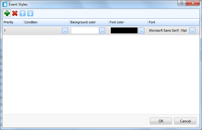 In the Font dialog box, select the font, font style and size that you want to display the certain event text in.